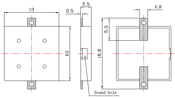 9 | Dimension | mm | 13.0 x 13.0 x H2.5 | See appearance drawing |