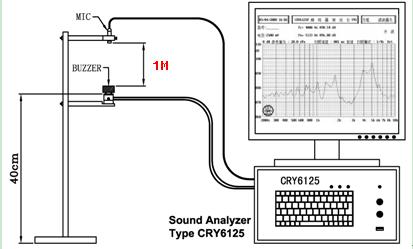 The oscillation frequency, current consumption and sound pressure are measured by the measuring instruments shown below