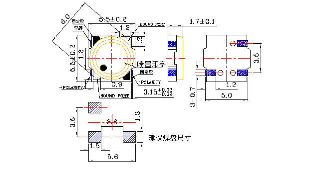 9 | Dimension | mm | 5.5 x 5.5 x H1.7 | See appearance drawing |