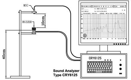 The oscillation frequency, current consumption and sound pressure are measured by the measuring instruments shown below