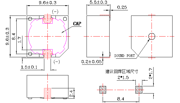 9 | Dimension | mm | 9.6x 9.6x H5.5 | See appearance drawing |